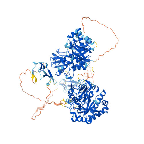 Computed Structure Models provide per-residue confidence score (pLDDT) between 0 and 100. Some regions below 50 pLDDT may be unstructured in isolation.