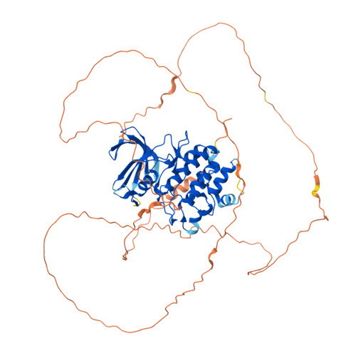Computed Structure Models provide per-residue confidence score (pLDDT) between 0 and 100. Some regions below 50 pLDDT may be unstructured in isolation.