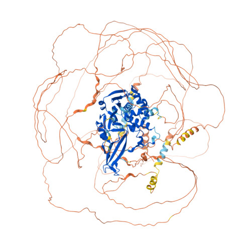 Computed Structure Models provide per-residue confidence score (pLDDT) between 0 and 100. Some regions below 50 pLDDT may be unstructured in isolation.