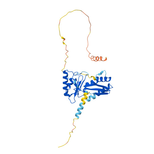 Computed Structure Models provide per-residue confidence score (pLDDT) between 0 and 100. Some regions below 50 pLDDT may be unstructured in isolation.