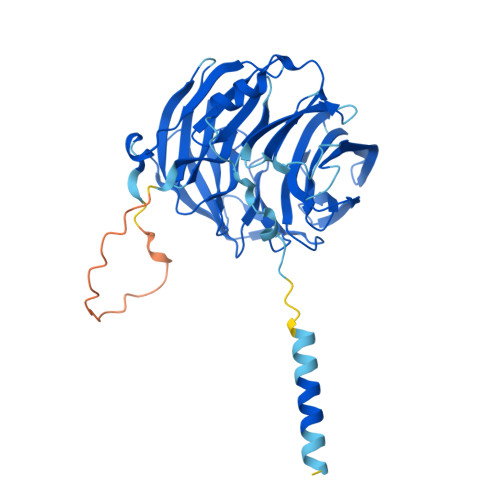 Computed Structure Models provide per-residue confidence score (pLDDT) between 0 and 100. Some regions below 50 pLDDT may be unstructured in isolation.