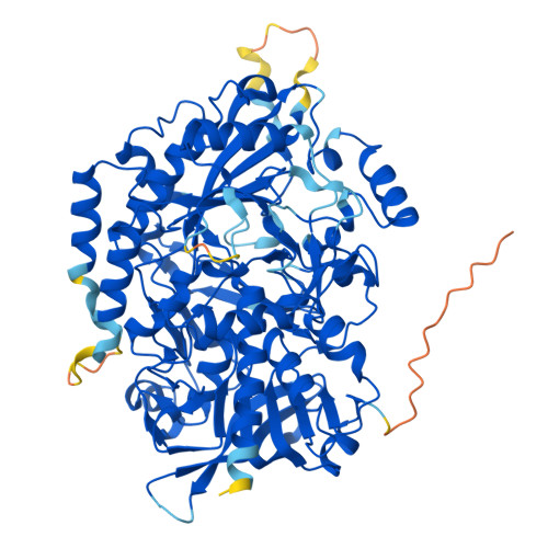 Computed Structure Models provide per-residue confidence score (pLDDT) between 0 and 100. Some regions below 50 pLDDT may be unstructured in isolation.